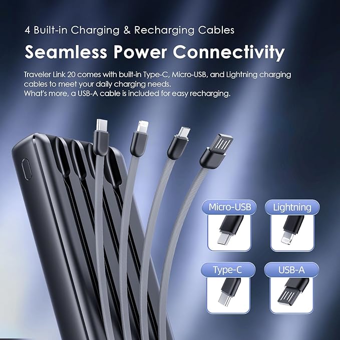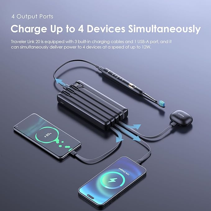 O Power Bank Oraimo Traveller Link 20 é a solução perfeita para viajantes e para aqueles que precisam carregar constantemente seus dispositivos. O banco de energia possui uma capacidade de 20.000 mAh, cabos de carregamento integrados, uma lanterna LED e um design compacto, tornando-o uma opção atraente para viajantes e guerreiros móveis.